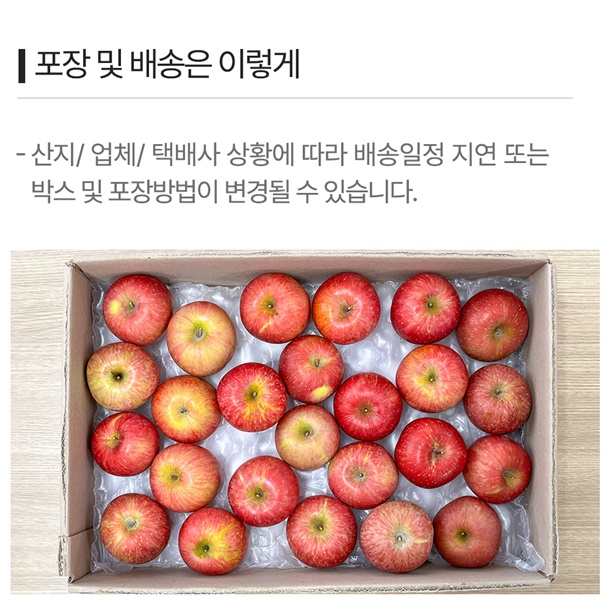 - 배송일 지정은 불가하며 산지에서 순차적으로 출고됩니다. 배송 메시지는 배송 시 택배기사에게 전달되는 사항으로 날짜가 기재 되어있어도 지정일 배송이 어렵습니다.