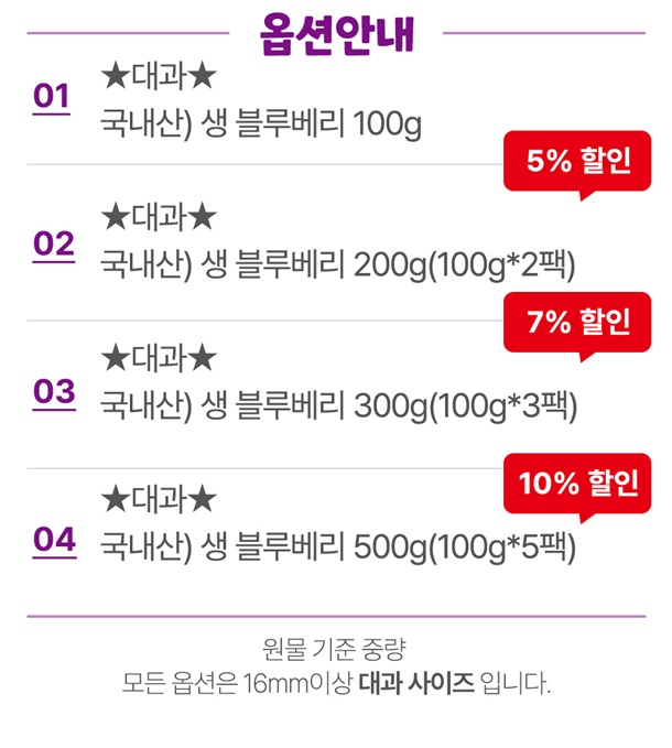 (대/16mm이상) 100g*1팩, 100g*2팩, 100g*3팩, 100g*5팩 |