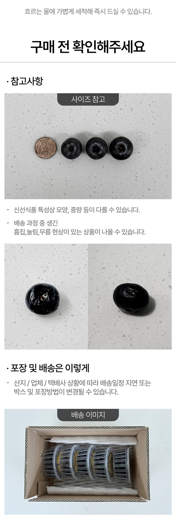 - 재판매가 불가한 신선식품 특성상 상품 하자 외의 단순변심(맛, 향, 식감 등)으로 인한 교환 및 반품이 불가합니다.