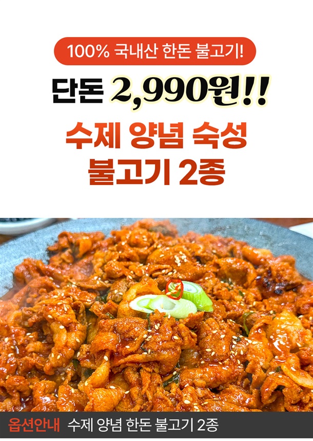 | 상품구성 및 내용량 | 고추장불고기(300g*1) / 고추장불고기(300g*3) / 간장불고기(300g*1) / 간장불고기(300g*3) / 고추장불고기(300g*1)+간장불고기(300g*1) |