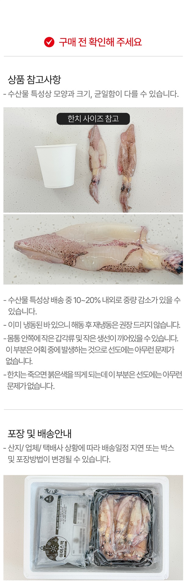 교환 및 환불에 필요한 상품 촬영본 : 택배 운송장, 상품의 불량부분, 택배 박스의 전체 외관
