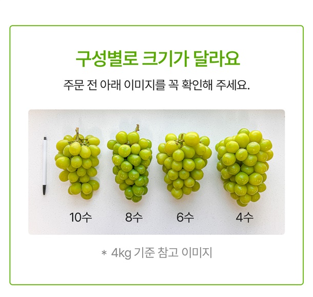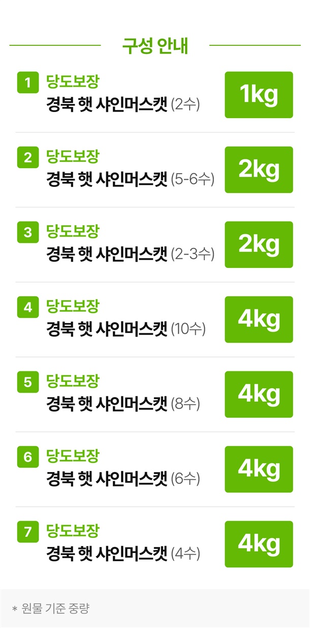 1kg(2수) / 2kg(5-6수, 2-3수) / 4kg(10수, 8수, 6수, 4수) |