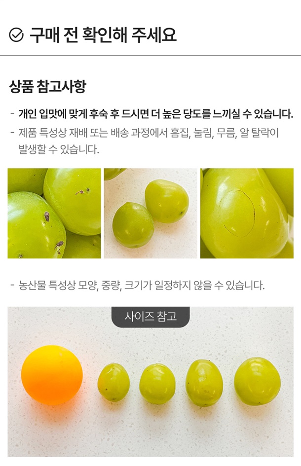 - 재판매가 불가한 신선식품 특성상 상품 하자 외의 단순변심(맛, 향, 식감 등)으로 인한 교환 및 반품이 불가합니다.