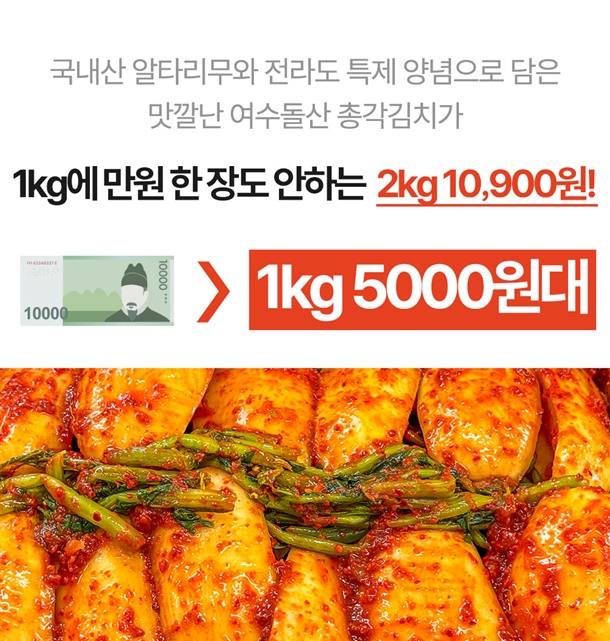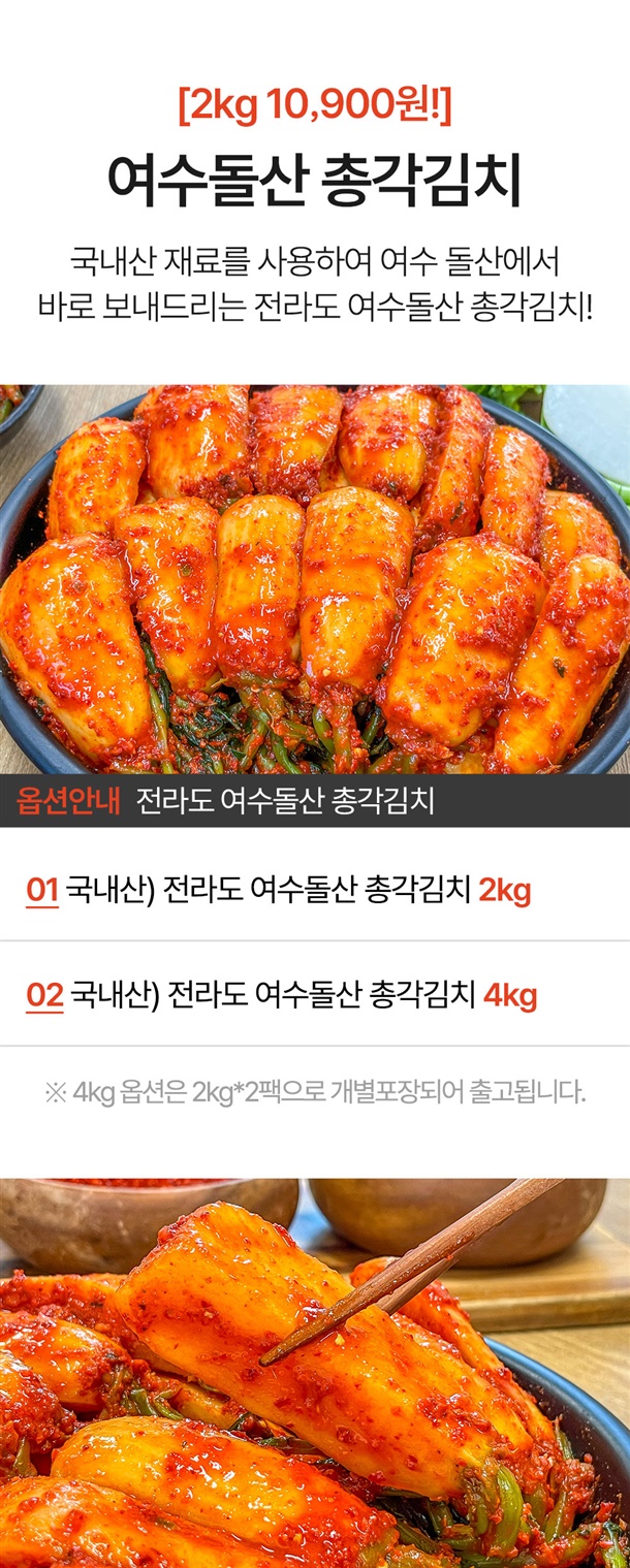절임총각무75%(총각무95%:국내산,식염5%:국내산), 고춧가루11%(국내산), 건고추4%(국내산), 까나리액젓3%(까나리65%:국내산,잡어10%,식염25%:국내산),식염(국내산), 양파(국내산), 무(국내산), 다시마, 디포리(국내산), 대파(국내산), 찹쌀(국내산), 새우젓(국내산), 마늘(국내산), 설탕, 생강(국내산) *새우 함유 |