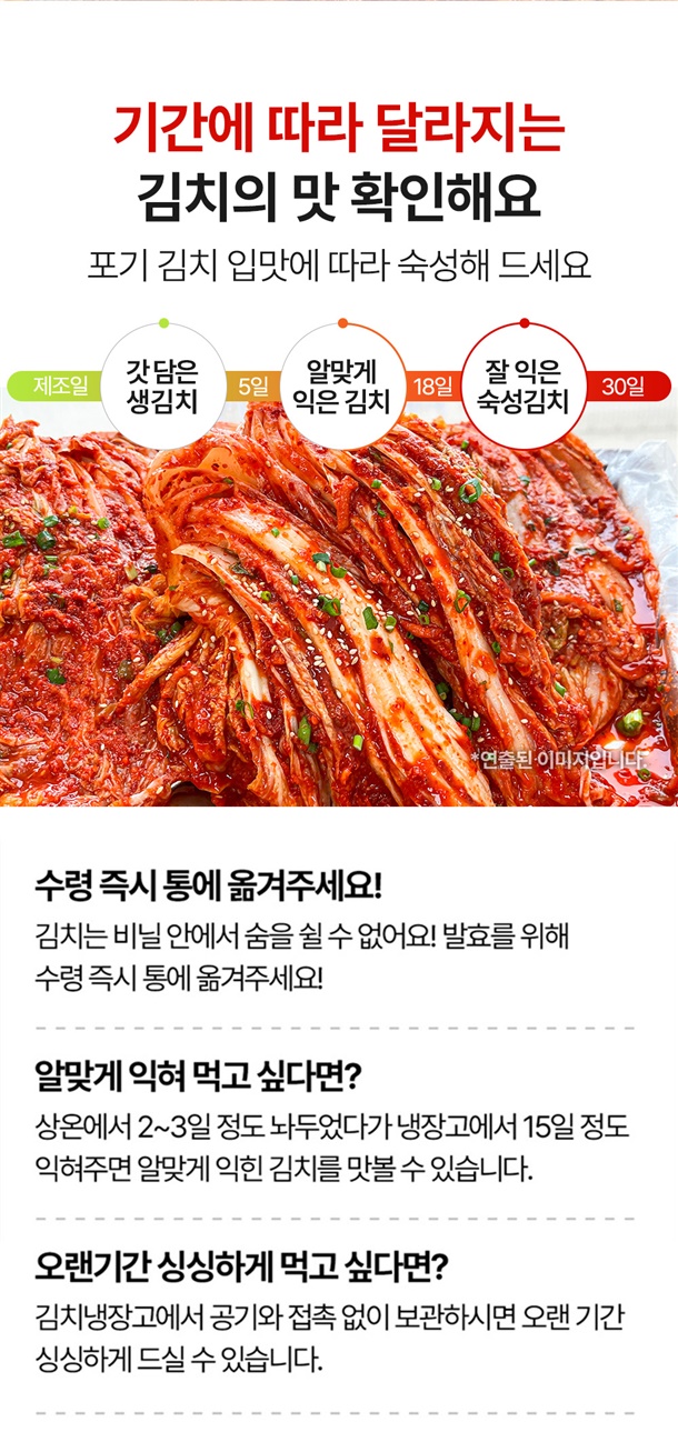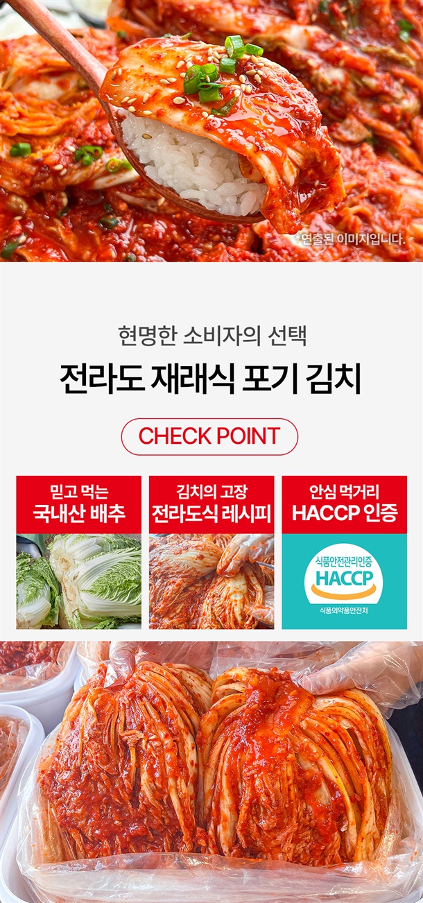 | 원재료명 및 함량 (원산지) | ■일반 : 배추(국산) 75.9%, 무(국산) 14%, 고춧가루(중국산) 4%, 마늘 2%(국산), 양파 1.1%(국산), 생강, 대파, 설탕, 물엿, 액젓, 염장새우[수입산], 천일염0.1%[중국산], L-글루탐산나트륨 【새우 함유 (알레르기 유발물질) 】 / ■프리미엄 : 배추(국산) 75.9%, 무(국산) 14%, 고춧가루(국산)4%,마늘2%(국산),양파1.1%(국산), 생강, 대파, 설탕, 물엿, 액젓, 염장새우[국산], 천일염 0.1%[국산], L-글루탐산나트륨 【새우 함유 (알레르기 유발물질)】 |