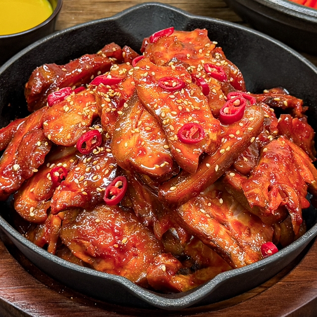 | 영양성분 | 날불태워족소스 : 총 내용량 30g당(83kcal) - 나트륨(363mg)18%, 탄수화몰(20g)6%, 당류(16g)16%, 지방(0.2g)0%, 트랜스지방(0g), 포화지방(0g)0%, 콜레스테롤(0mg)0%, 단백질(4g)2% |