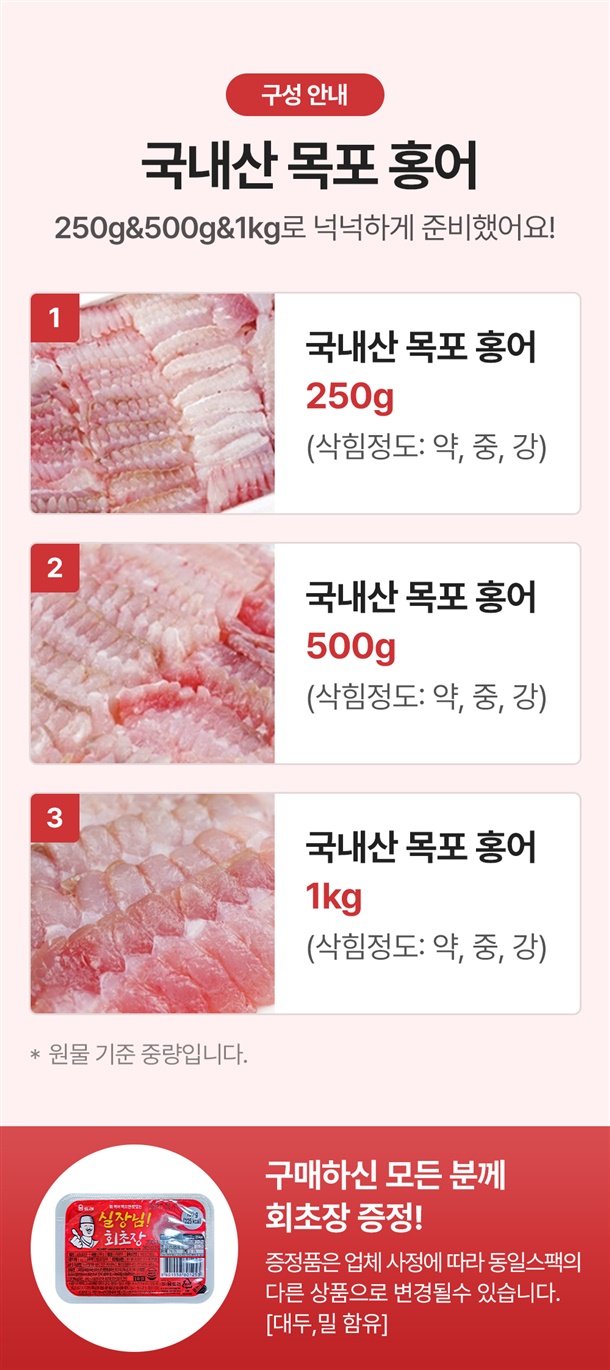 * 본제품은 홍어만 사용하는 제조시설에서 제조하고 있습니다./ * 특정질환,특이체질,알레르기체질의 경우 과민반응이 나타날수 있으므로 표기사항을 꼭 확인 후 섭취해 주세요 * 본 제품은 공정거래위원회 고시 소비자 분쟁해결기준에 의거 교환 또는 환불해드립니다. * 부정·불량식품 신고는 국번없이 1399