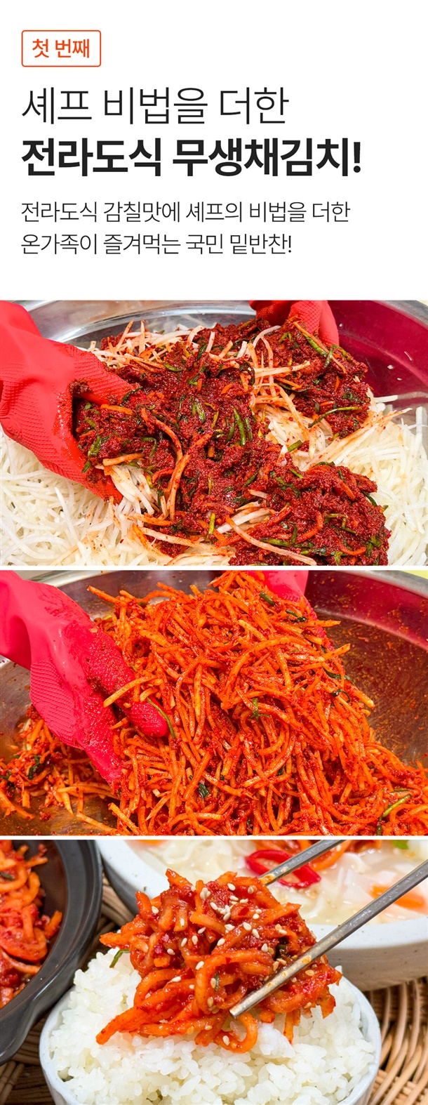 무(국내산)73%,꽃게육수5%,고추가루(국내산,중국산(해썹))5%,사과4%,과당3%,(새우(베트남산)2%,양파(국내산)2%,마늘(국내산)1%,생강(국내산)1%,액젓(국내산)1%,당근(국내산,수입산)1%,청양고추(국내산)1%,천일염(호주산)1% |