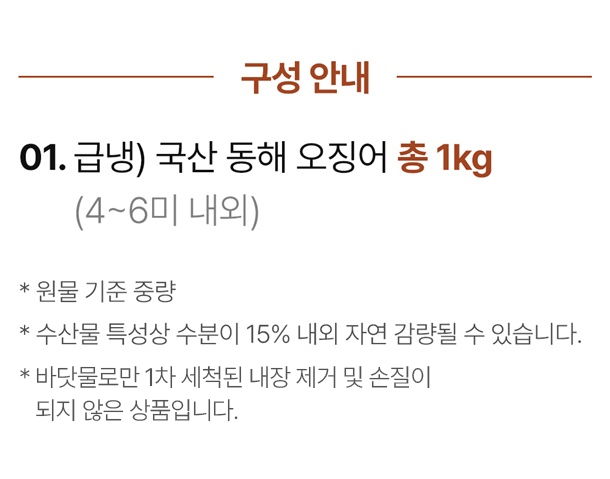 원재료명 및 함량 (원산지) 오징어(국내산)100%