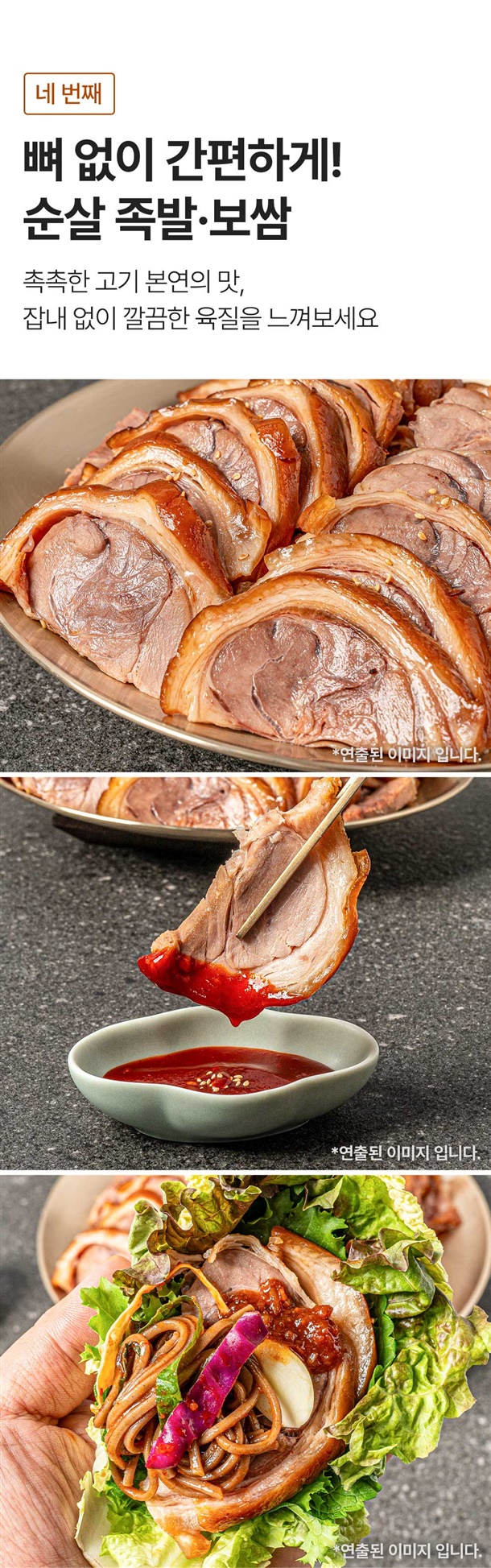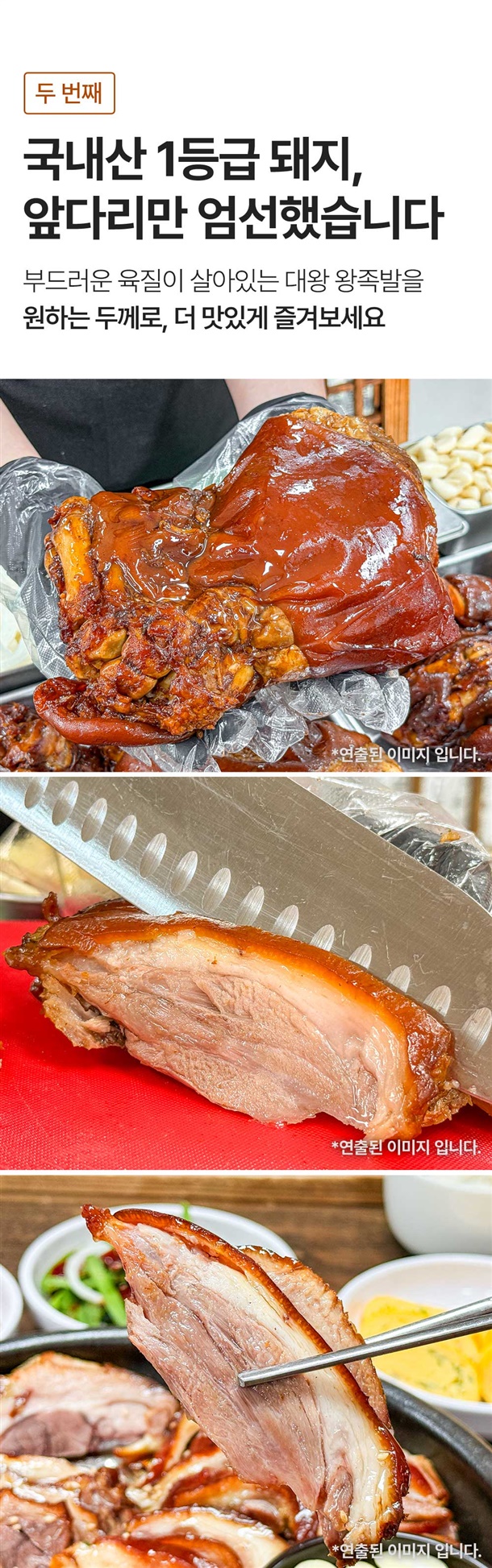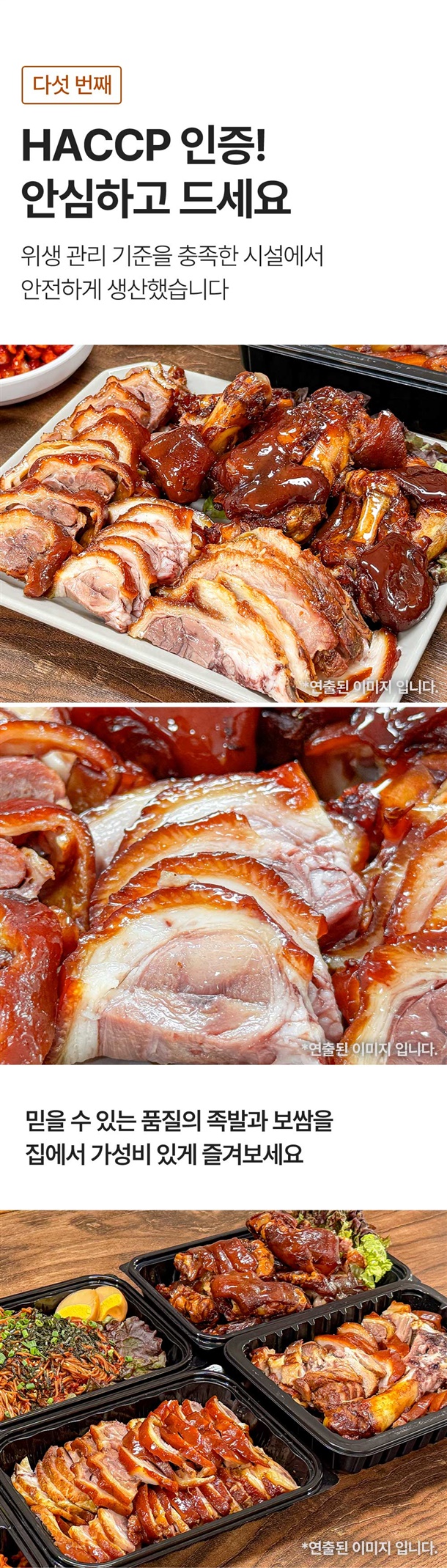 | 1. 상품구성 및 내용량 | 왕족발: 1.3kg내외 / 미니족발: 700g / 순살족발: 250g*1팩, 250g*2팩 / 보쌈: 250g내외*1팩, 250g내외*2팩 |
