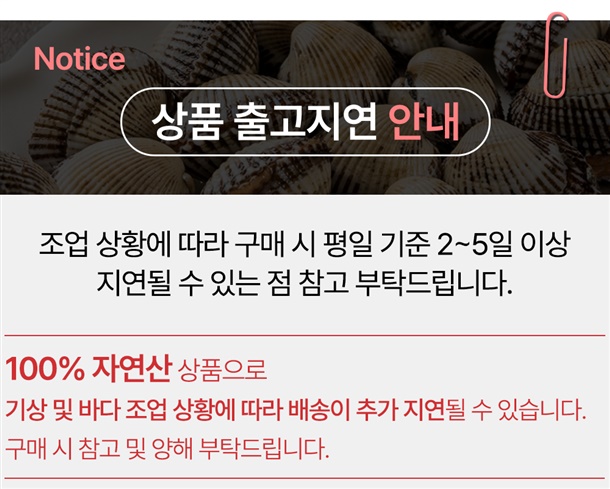 출고일 기준 당일 또는 2일 이내 어획 상품 출고 |