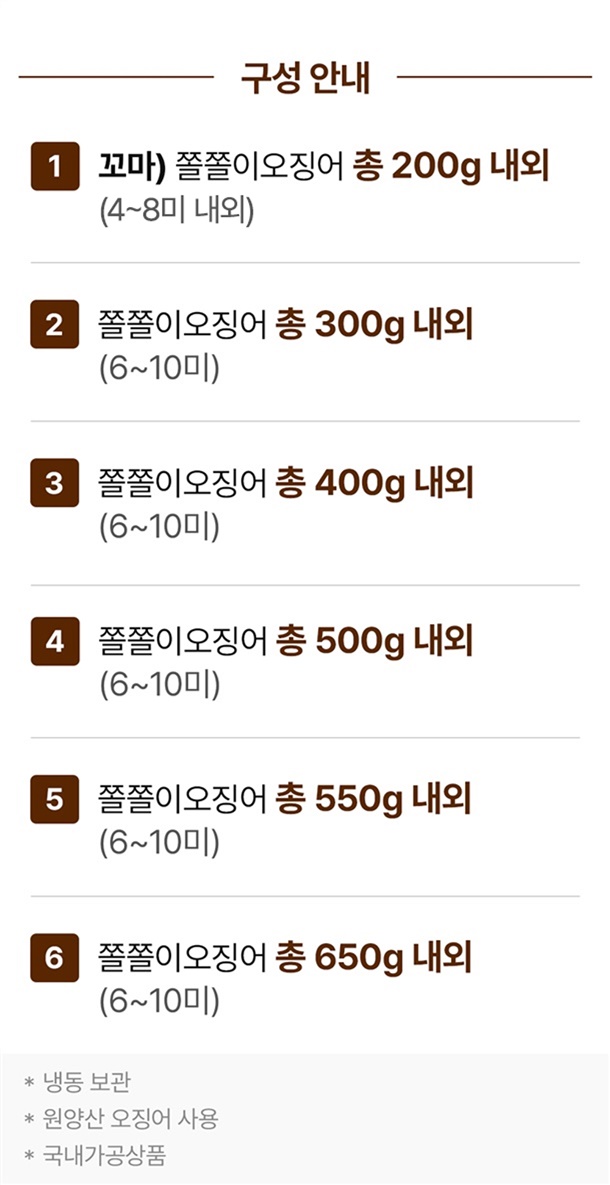 200g / 300g / 400g / 500g / 550g / 650g 내외 |