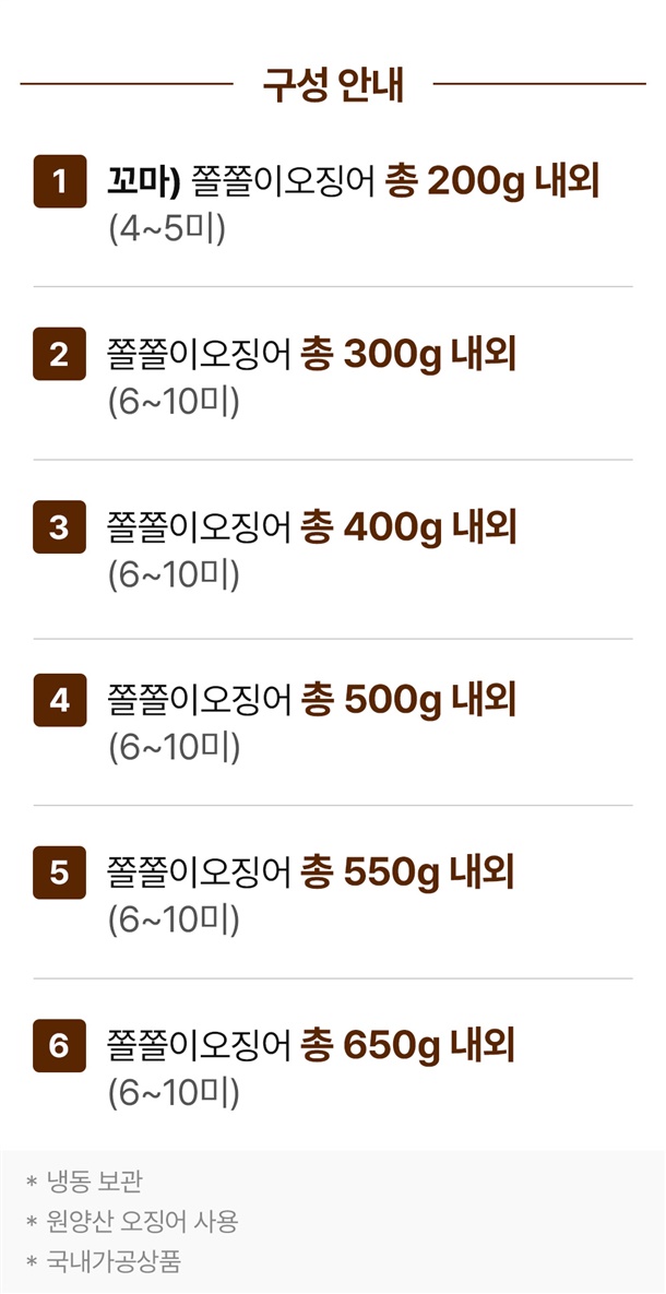 200g / 300g / 400g / 500g / 550g / 650g 내외 |