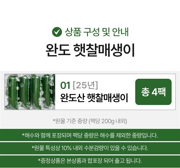 - 배송일 지정은 불가하며 산지에서 순차적으로 출고됩니다. 배송 메시지는 배송 시 택배기사에게 전달되는 사항으로 날짜가 기재 되어있어도 지정일 배송이 어렵습니다.
