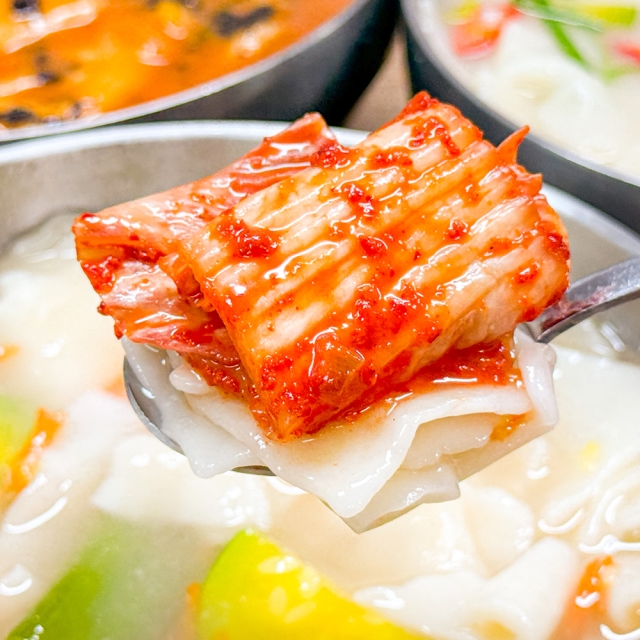 | 2.원재료명 및 함량 (원산지) | ●옹심이 : 정제수,비법베이스-E#1[복합조미식품1{정제소금(중국산)},복합조미식품2{북어추출액(건북어머리:러시아산)}, 새우분말,멸치조미분말,혼합제제(변성전분,덱스트린)],저감미당,정제소금(국산),소스[멸치추출농축액(건멸치(국산)}],고춧가루,카라멜색소 【우유, 대두, 밀, 새우, 쇠고기, 닭고기, 조개류(굴) 함유】 / ●장칼국수비법소스 : 정제수,고추장28.4%[소맥분(밀:미국산,호주산),물엿,고추양념(중국산),정제소금,호화쌀가루],된장10.8%[대두(외국산),소맥분(밀:미국,호주산),메주된장,정제소금,한식된장],멸치조미분말[복합조미식품{정제소금(국산)}],비법베이스-E#2,혼합간장4.1%(양조간30%, 산분해간장70%),정제소금,마늘,복합조미식품,L-글루탐산나트륨(향미증진제),설탕,멸치분말,소스,고춧가루,야채짬뽕베이스,흑후추분말 【우유,대두,밀,닭고기,쇠고기 함유】 / ●한우사골 : 정제수,한우사골농축액37.0%[한우사골농축액88%{한우사골(국내산)20%,한우잡뼈(국내산)8.6%/가용성고형분함량52%이상},정제소금(국내산)],재제소금[천일염(호주산),천일염(국산)],식육추출가공품[치킨추출액(닭고기:국산),정제소금(국산)], L-글루탐산나트륨(향미증진제),양조간장,설탕,복합조미식품1,소스1,덱스트린,복합조미식품2,식물성크림,생마늘농축액,백후추,잔탄검,소스2 【우유,대두,밀,닭고기,쇠고기 함유】 |