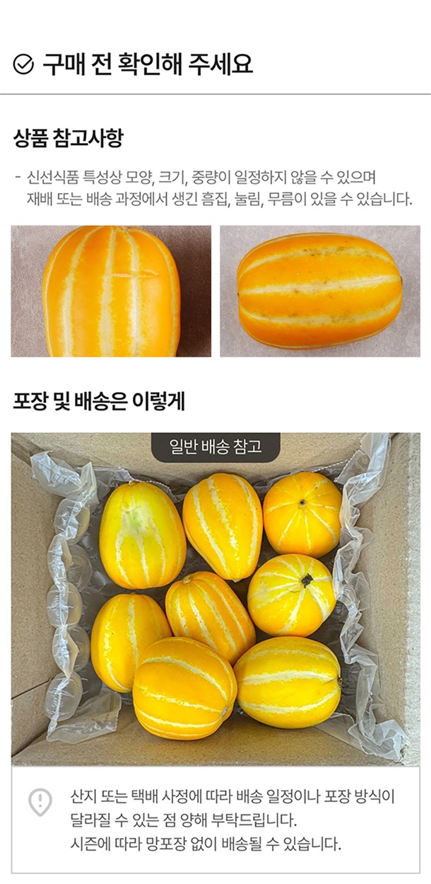 - 배송일 지정은 불가하며 산지에서 순차적으로 출고됩니다. 배송 메시지는 배송 시 택배기사에게 전달되는 사항으로 날짜가 기재 되어있어도 지정일 배송이 어렵습니다.