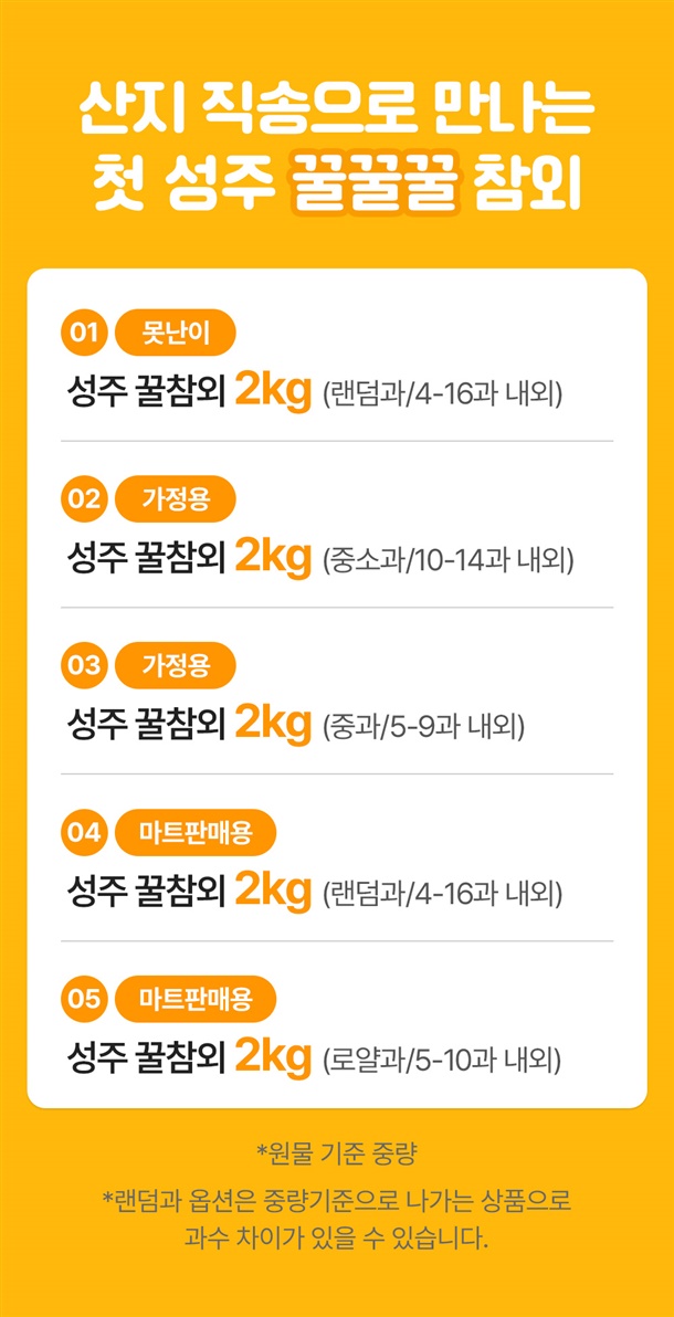 [못난이](랜덤과)2kg / 가정용(중소과/중과과) 2kg / [마트용](랜덤과/로얄과) 2kg / |