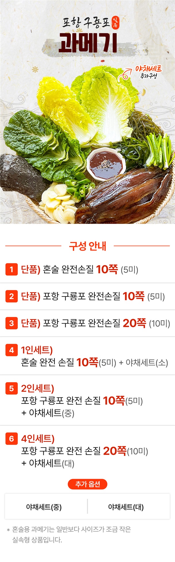 혼술과메기10쪽(5미)/ 손질과메기10쪽(5미) / 손질과메기 20쪽 / 야채세트(소) /야채세트(중) / 야채세트(대) |