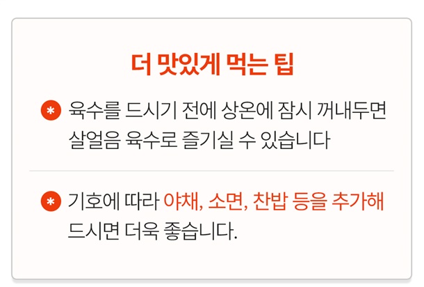물회육수 : 총 내용량 300g(340kcal) - 나트륨(1285mg)8.03%,탄수화물(80g)24.6%,당류(3.8g)3.8%,지방(3g)0%,트랜스지방(0g),포화지방(0g)0%,콜레스테롤(60mg)20%,단백질(9g)16.4% |