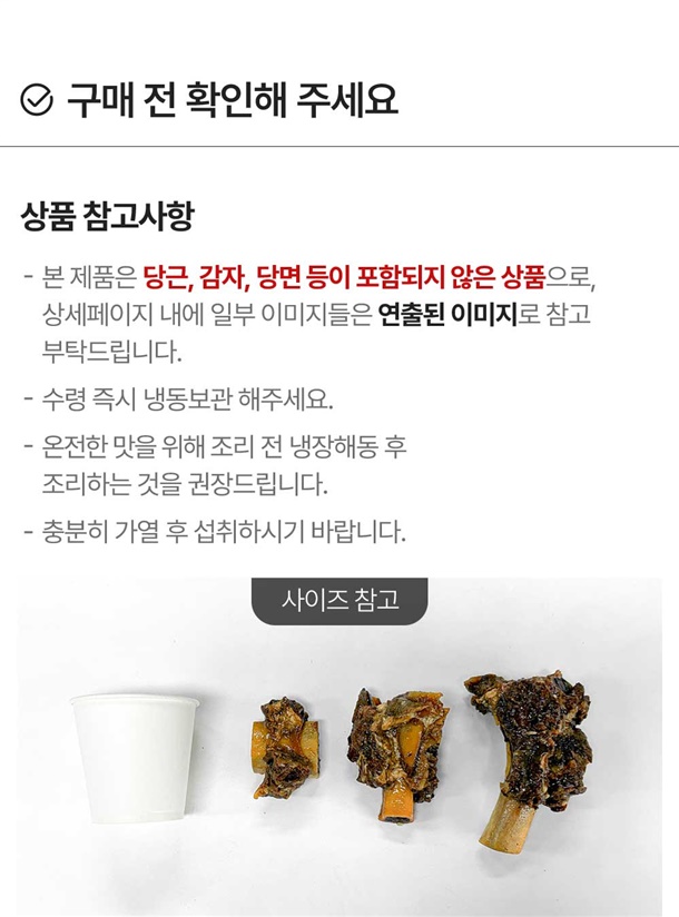 ㆍ본 제품은 이미 냉동된 바 있으니 해동 후 다시 재냉동시키지 마십시오. ㆍ본 제품은 냉동제품이므로 구입 즉시 냉동 보관하시기 바랍니다. ㆍ제품 개봉시 손을 다칠 위험이 있으니 주의하십시오. ㆍ뼈가 있는 제품이므로 드실 때 부주의로 인하여 치아가 손상되거나 목에 걸리지 않게 주의하십시오. 특히 어린이가 섭취시 뼈를 섭취하지 않도록 주의하십시오. ㆍ조리시 자리를 뜨지 마시고 조리과정을 확인하십시오. ㆍ본 제품은 알류, 우유, 메밀, 땅콩, 고등어, 게, 새우, 돼지고기, 복숭아, 토마토, 아황산류, 호두, 닭고기, 오징어, 조개류(굴,전복,홍합 포함), 잣을 사용한 제품과 같은 제조 시설에서 제조하고 있습니다.