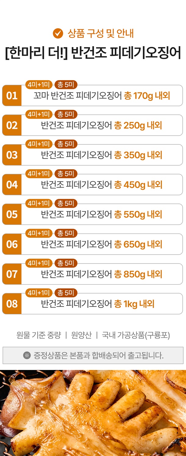 170g 내외(꼬마) / 250g 내외 / 350g 내외 / 450g 내외 / 550g 내외 / 650g 내외 / 850g 내외 / 1kg 내외 |