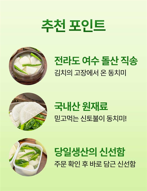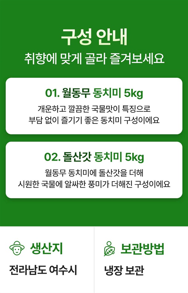 동치미: 2025077538010 / 돌산 갓동치미: 2025077538012 |