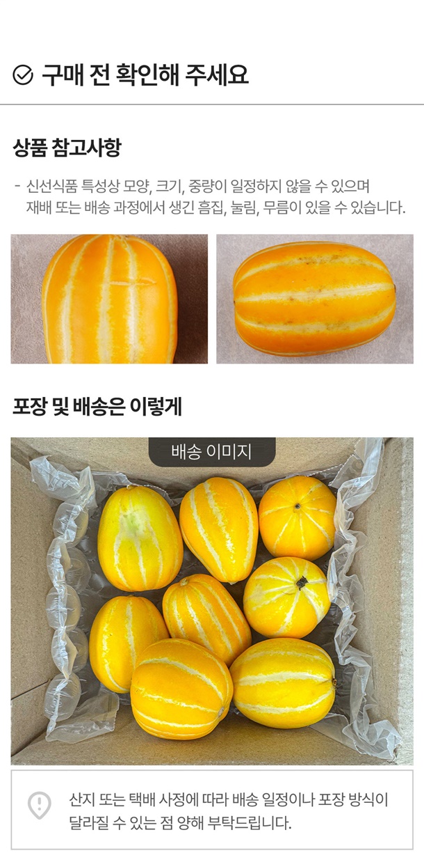 - 배송일 지정은 불가하며 산지에서 순차적으로 출고됩니다. 배송 메시지는 배송 시 택배기사에게 전달되는 사항으로 날짜가 기재 되어있어도 지정일 배송이 어렵습니다.