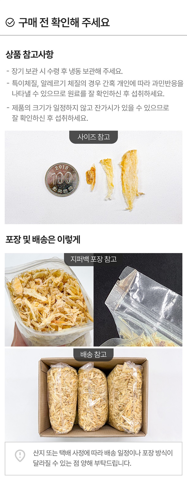 - 배송일은 결제 다음 날부터 평일 기준 2~4일 정도 소요됩니다. 주문 폭주나 산지, 택배 상황에 따라 추가로 지연될 수 잇습니다.
