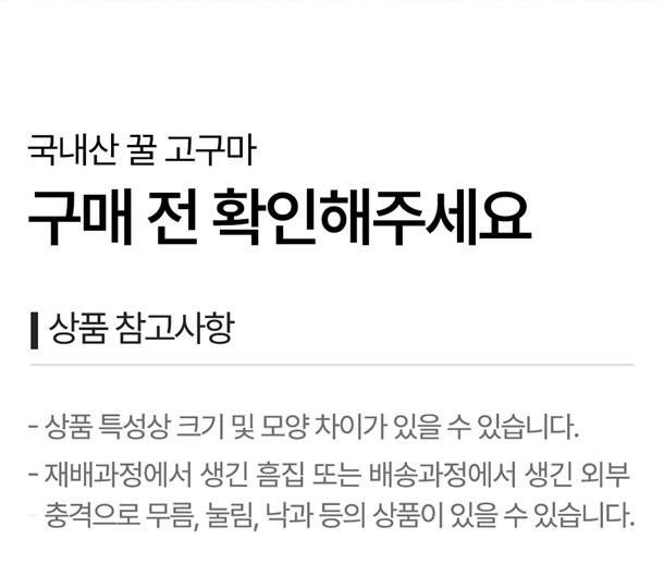 - 재판매가 불가한 신선식품 특성상 상품 하자 외의 단순변심(맛, 향, 식감 등)으로 인한 교환 및 반품이 불가합니다.