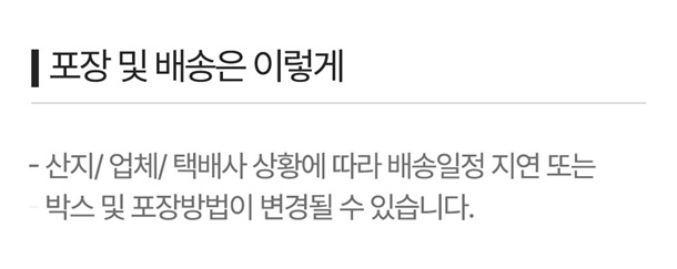 - 배송일 지정은 불가하며 산지에서 순차적으로 출고됩니다. 배송 메시지는 배송 시 택배기사에게 전달되는 사항으로 날짜가 기재 되어있어도 지정일 배송이 어렵습니다.