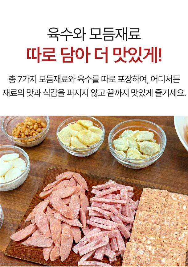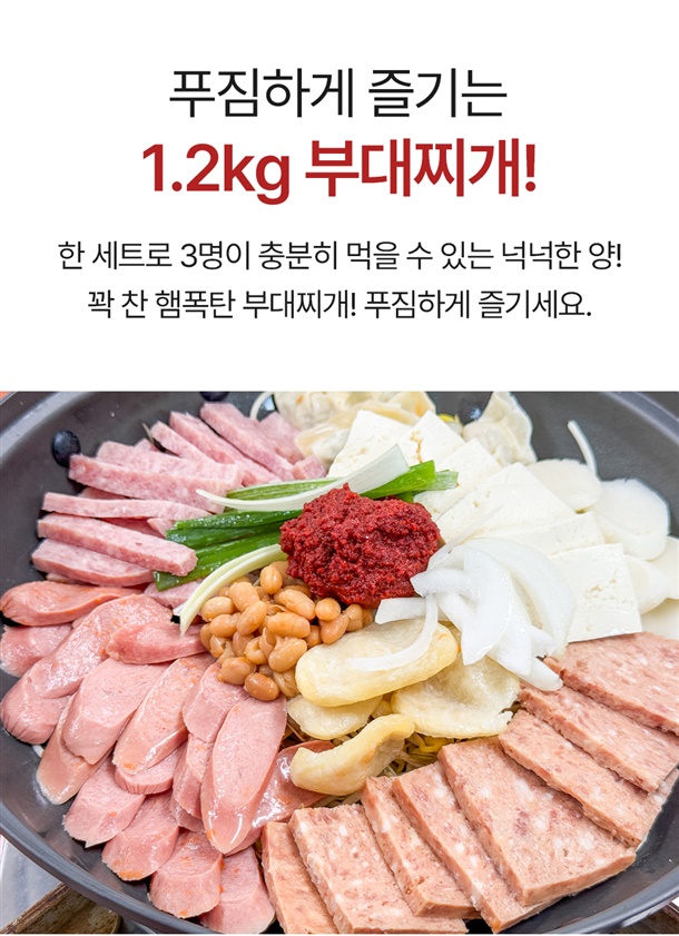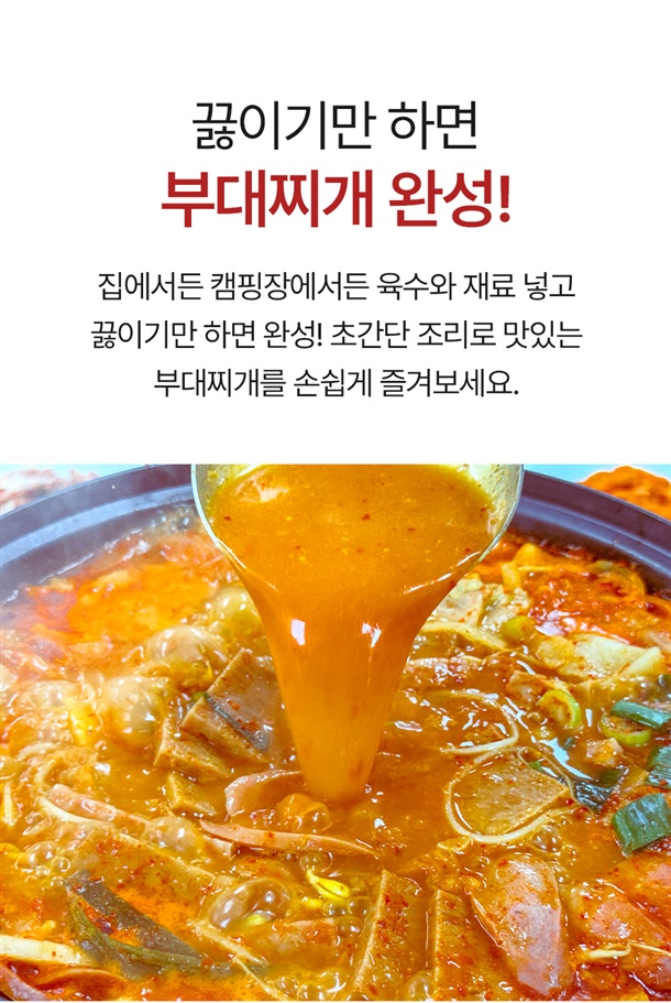 | 상품구성 및 내용량 | 부대찌개 육수 700g + 모듬사리 500g |