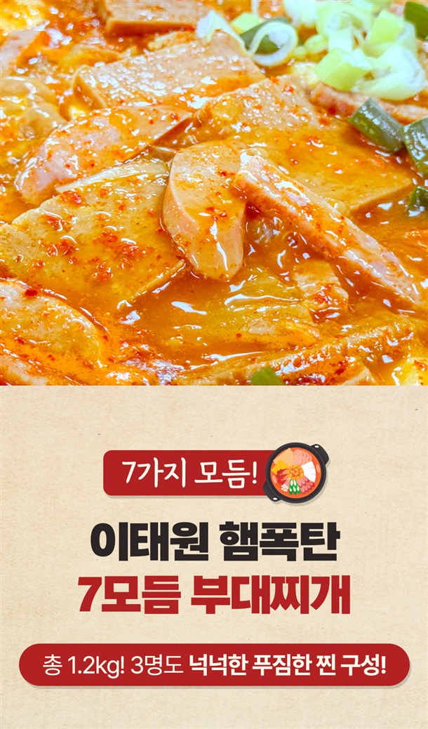| 제조원 | 이태원 부대찌개 : ㈜한상가득식품/경기도 파주시 광탄면 방축길 131-19, 부대찌개 모듬햄 : 대가식품/경기도 안산시 상록구 광덕산로 11, 1층(월피동) |