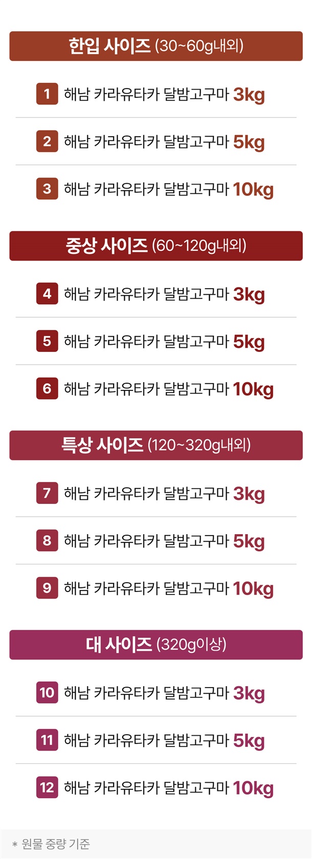 (한입 / 중상 / 특상 / 대) 3kg, 5kg, 10kg |