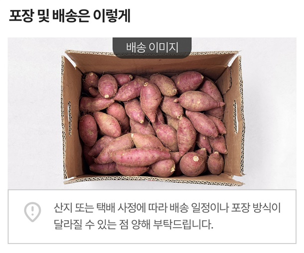 - 배송일 지정은 불가하며 산지에서 순차적으로 출고됩니다. 배송 메시지는 배송 시 택배기사에게 전달되는 사항으로 날짜가 기재 되어있어도 지정일 배송이 어렵습니다.
