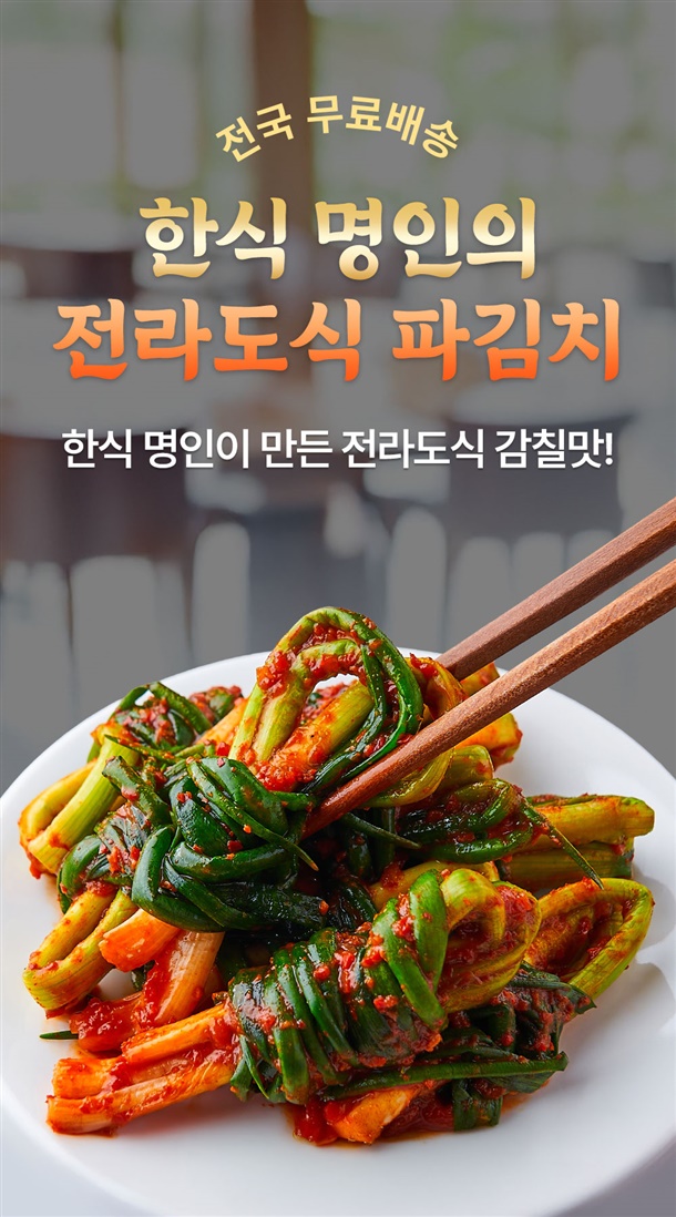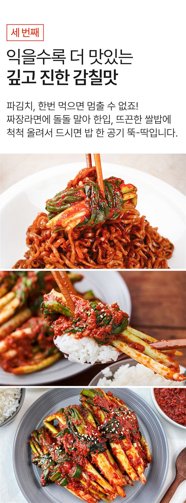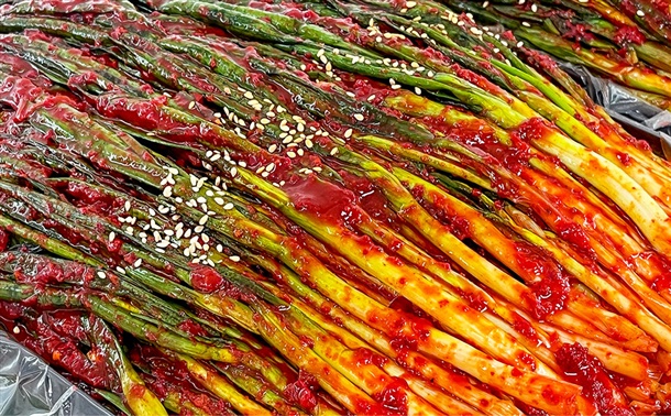 쪽파(국내산)75%, 꽃게육수5%, 고추가루(국내산,중국산(해썹))5%, 새우(베트남산)2%, 마늘(국내산)1%, 생강(국내산)1%, 양파(국내산)2%, 액젓(국내산)1%, 과당2%, 사과1%, 당근(국내산,수입산)1%, 무(국내산)2%, 간장1% |