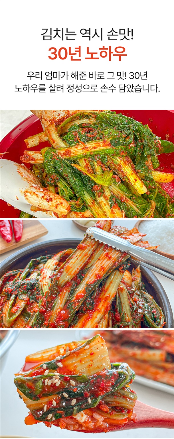 절임배추잎[얼갈이배추]68.4%[배춧잎(얼갈이배추)93%,천일염(국내산/영광/신안),정제소금3%(국내산)], 김칫속(택배용 양념)29.3%[고춧가루(국내산),찹쌀풀(국내산),멸치젓(국내산),멸치액(멸치액젓/국내산),젓새우(새우젓/국내산),마늘(국내산),양파(국내산),생강(국내산),물엿,설탕,정제수], 파(대파대체사용)2.3% *새우 함유 |