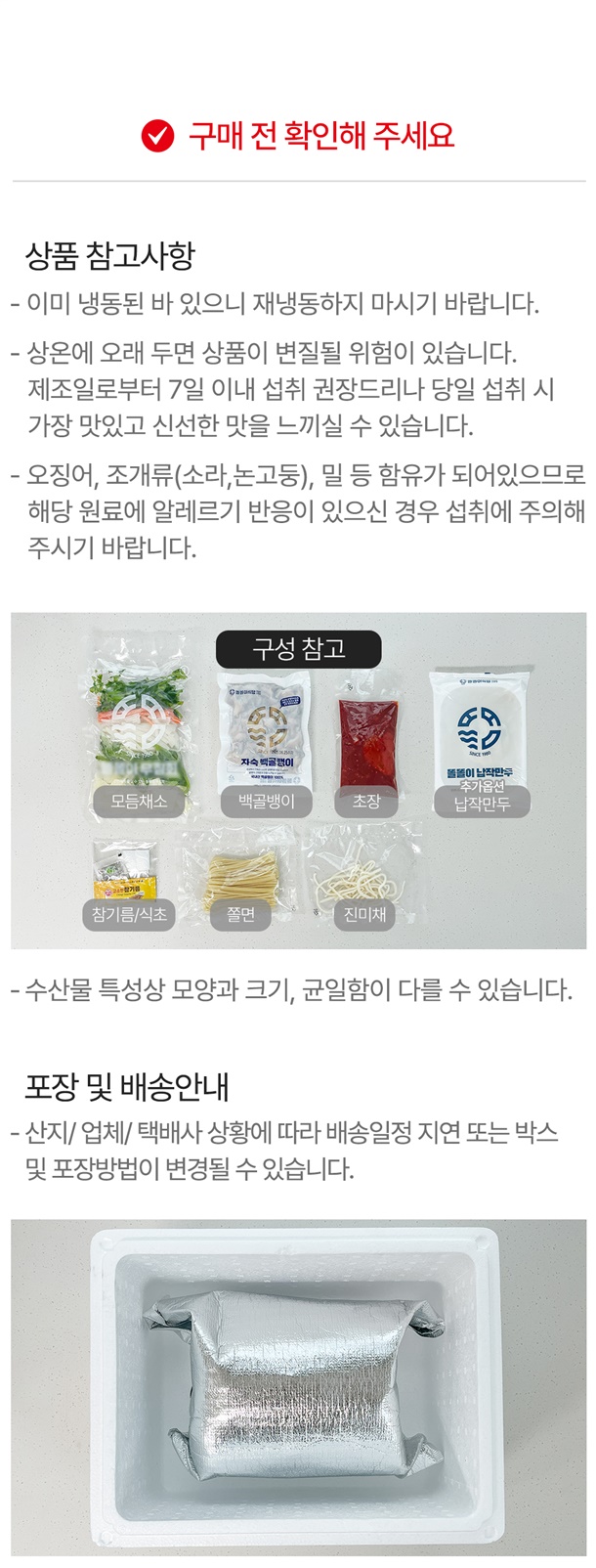 골뱅이무침회-냉장보관 / 납작만두-냉동보관 |