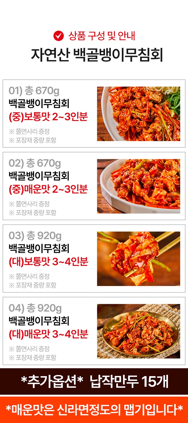 중사이즈(보통맛/매운맛)-670g / 대사이즈(보통맛/매운맛)-920g |