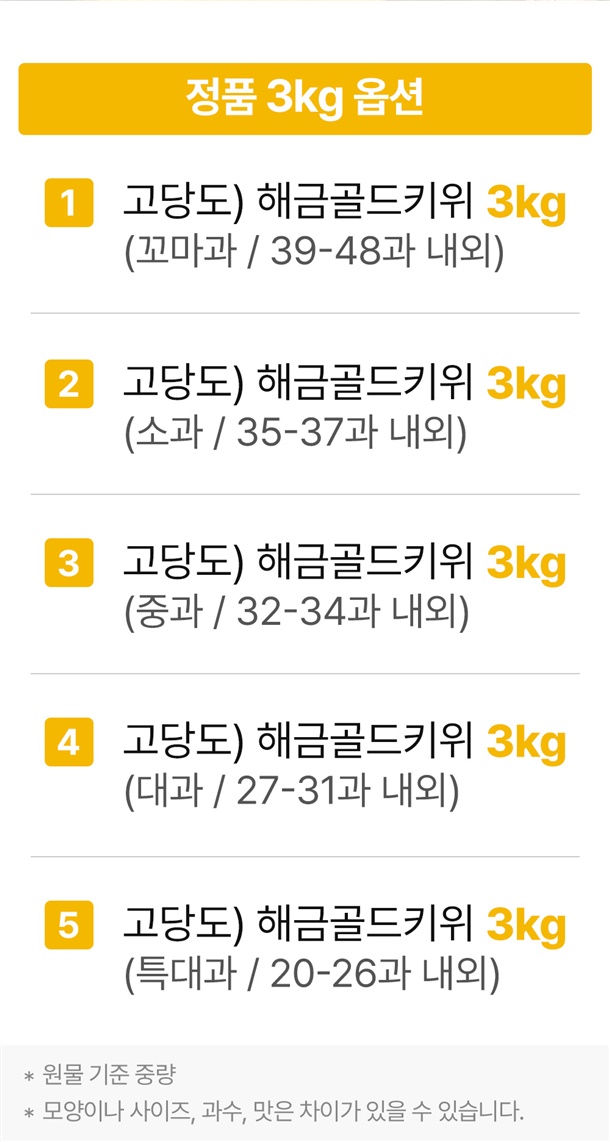 3kg (꼬마과/소과/중과/대과/특대과) |
