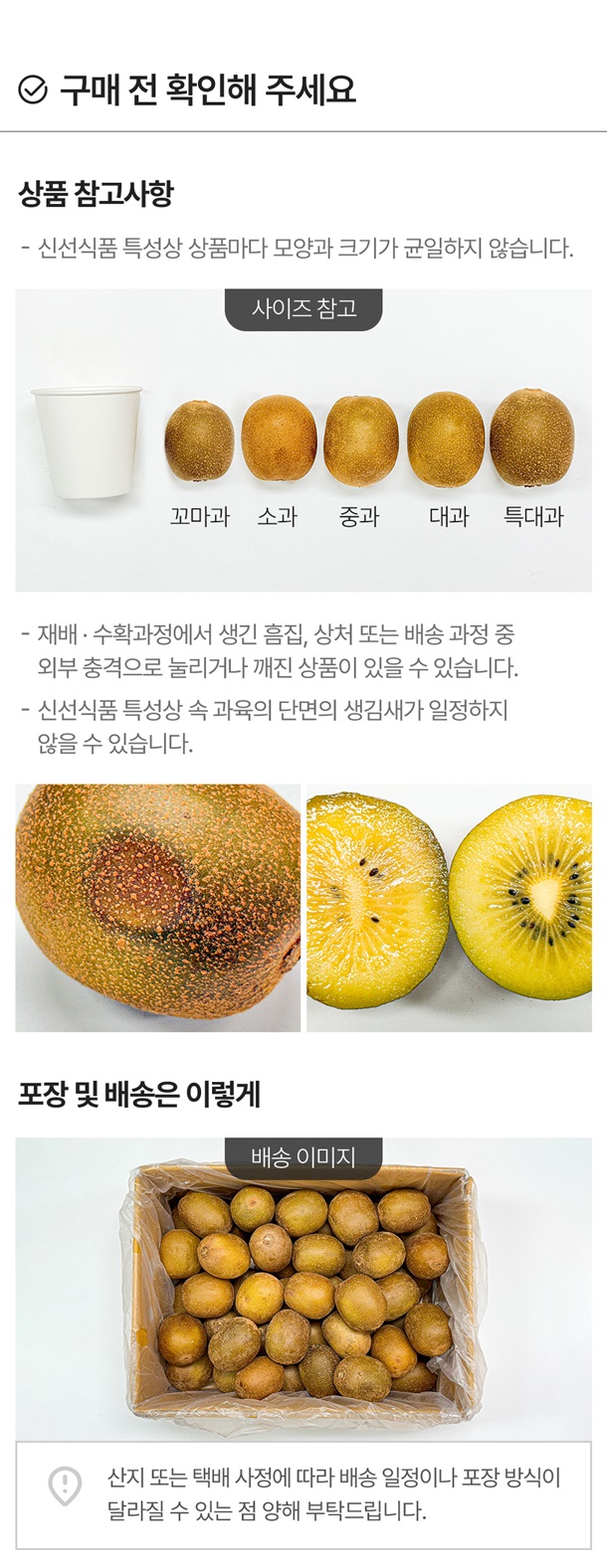 - 재판매가 불가한 신선식품 특성상 상품 하자 외의 단순변심(맛, 향, 식감 등)으로 인한 교환 및 반품이 불가합니다.