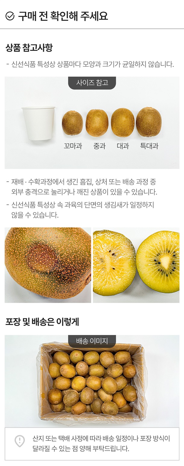 - 재판매가 불가한 신선식품 특성상 상품 하자 외의 단순변심(맛, 향, 식감 등)으로 인한 교환 및 반품이 불가합니다.