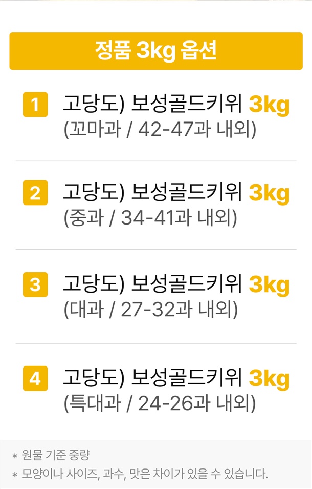 3kg (꼬마과/중과/대과/특대과) |