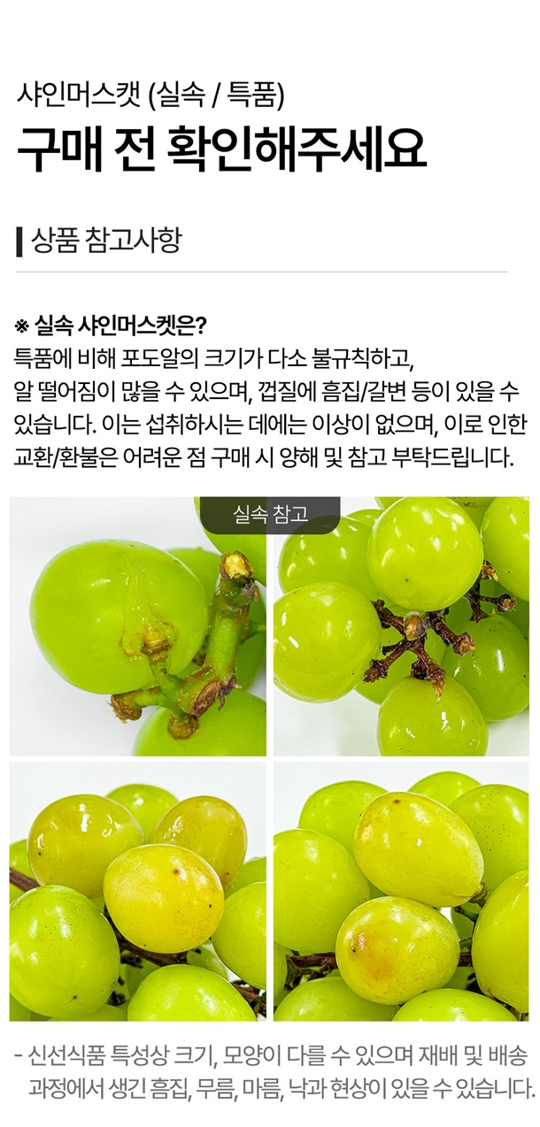 - 재판매가 불가한 신선식품 특성상 상품 하자 외의 단순변심(맛, 향, 식감 등)으로 인한 교환 및 반품이 불가합니다.