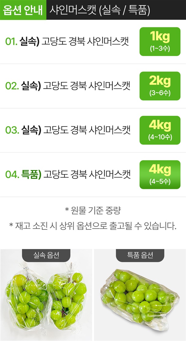 (실속) 1kg, 2kg, 4kg / (특품) 4kg |