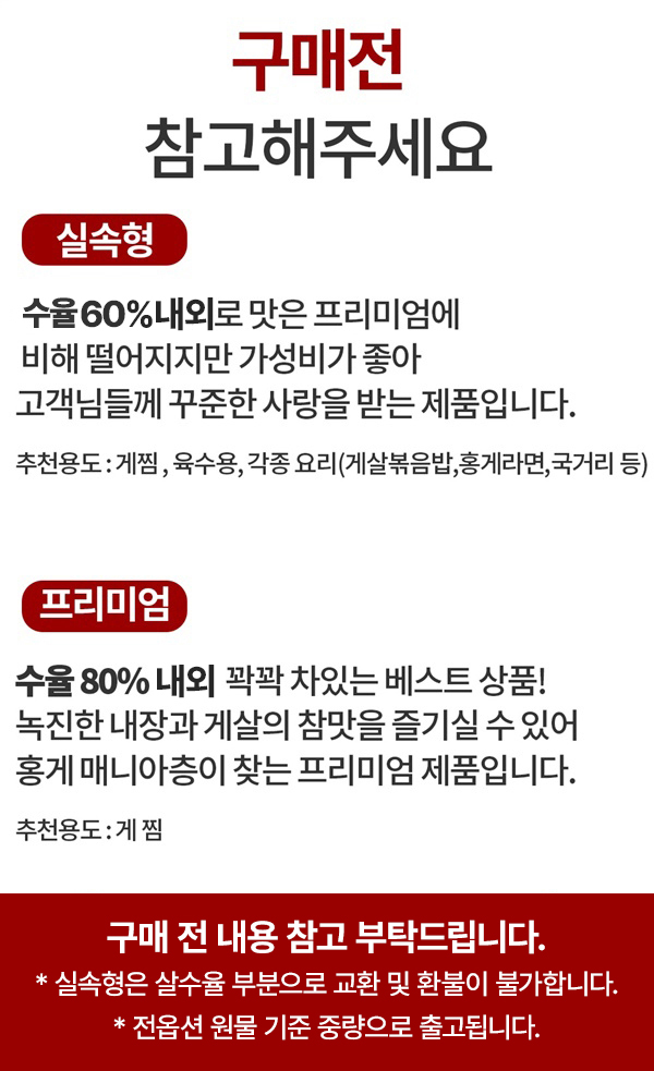 5분이상 데치면 살이 마를 수 있으니 가급적 그냥 드시길 바랍니다. / 상세페이지 참조 |