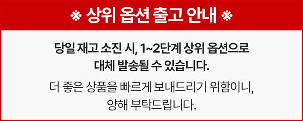 - 배송일 지정은 불가하며 산지에서 순차적으로 출고됩니다. 배송 메시지는 배송 시 택배기사에게 전달되는 사항으로 날짜가 기재 되어있어도 지정일 배송이 어렵습니다.