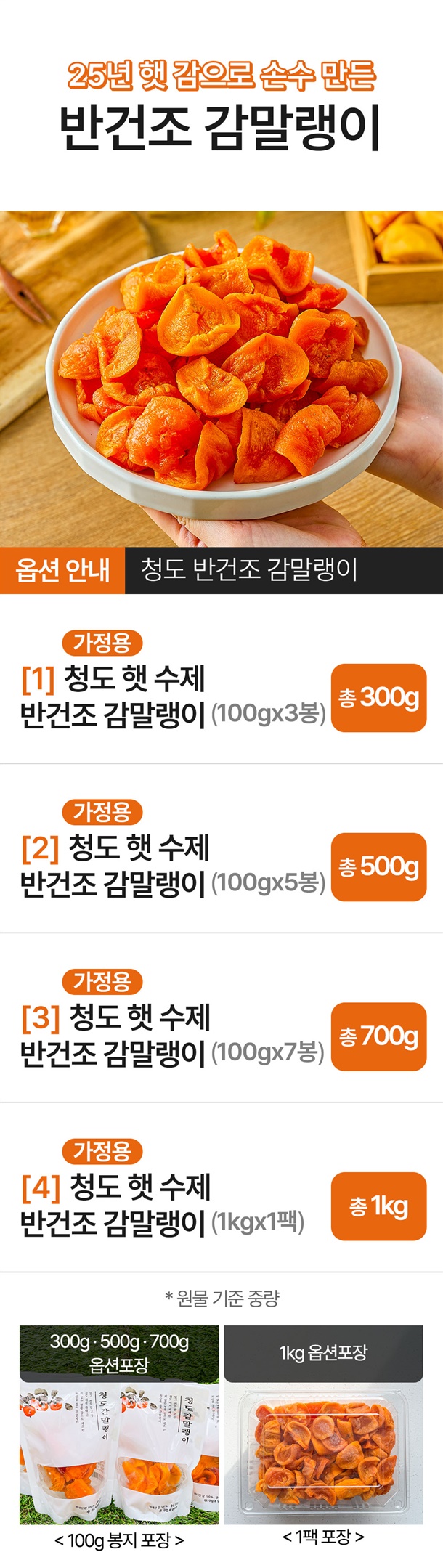 가정용 : 300g(100g*3봉) / 500g(100g*5봉) / 700g(100g*7봉) / 1kg(1팩) |