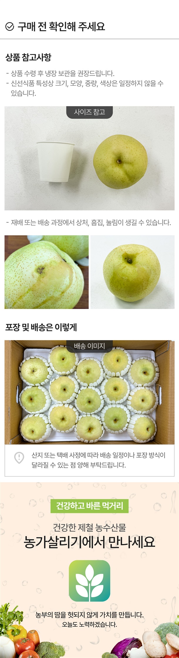- 배송일 지정은 불가하며 산지에서 순차적으로 출고됩니다. 배송 메시지는 배송 시 택배기사에게 전달되는 사항으로 날짜가 기재 되어있어도 지정일 배송이 어렵습니다.