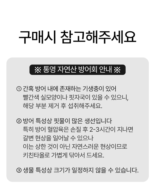 방어100%-국내산 / 생와사비회모듬양념장(증정품)-아주존회초장70%[고추장62.4%,액상과당25%,마늘2%,빙초산,설탕,구연산,L-글루탐산나트륨,참깨,레몬향,정제수,주정], 아주존프리미엄생와사비15%{아주존생와사비 페이스트41.6%[서양고추냉이그래뉼(중국산),서양고추냉이뿌리(국내산),서양고추냉이분말(중국산),와사비자포니카(중국산),저감미당,결정과당],겨자오일,식용색소 황색4호,식용색소 청색1호,아황산나트륨(보존료)0.02%}, 아주존와사비용회간장소스15%[혼합간장(탈지대두:인도산,미국산,중국산),물엿,주정,가다랑어,기타소금(수입산),파라옥시안식향산에틸(보존료)] *밀,대두 함유 |