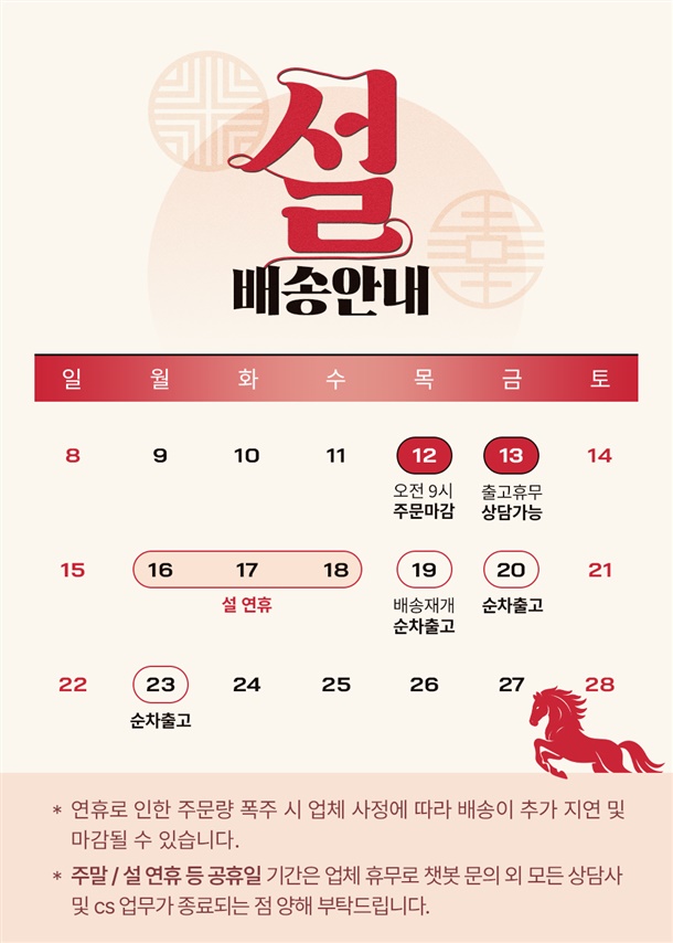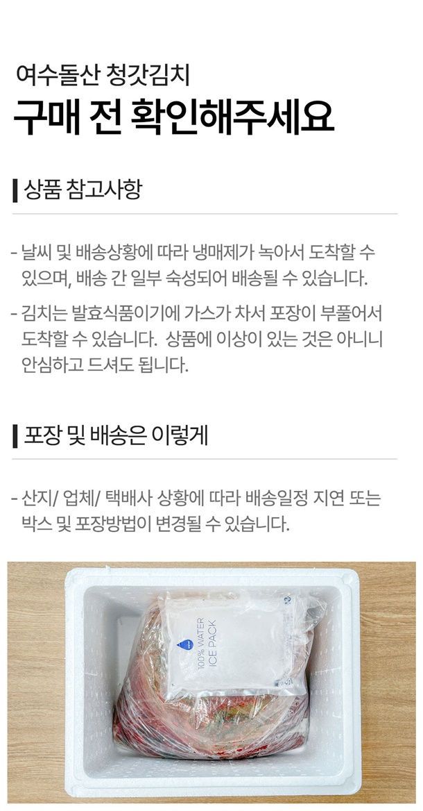 - 배송일은 결제 다음 날부터 평일 기준 2~4일 정도 소요됩니다. 주문 폭주나 산지, 택배 상황에 따라 추가로 지연될 수 잇습니다.